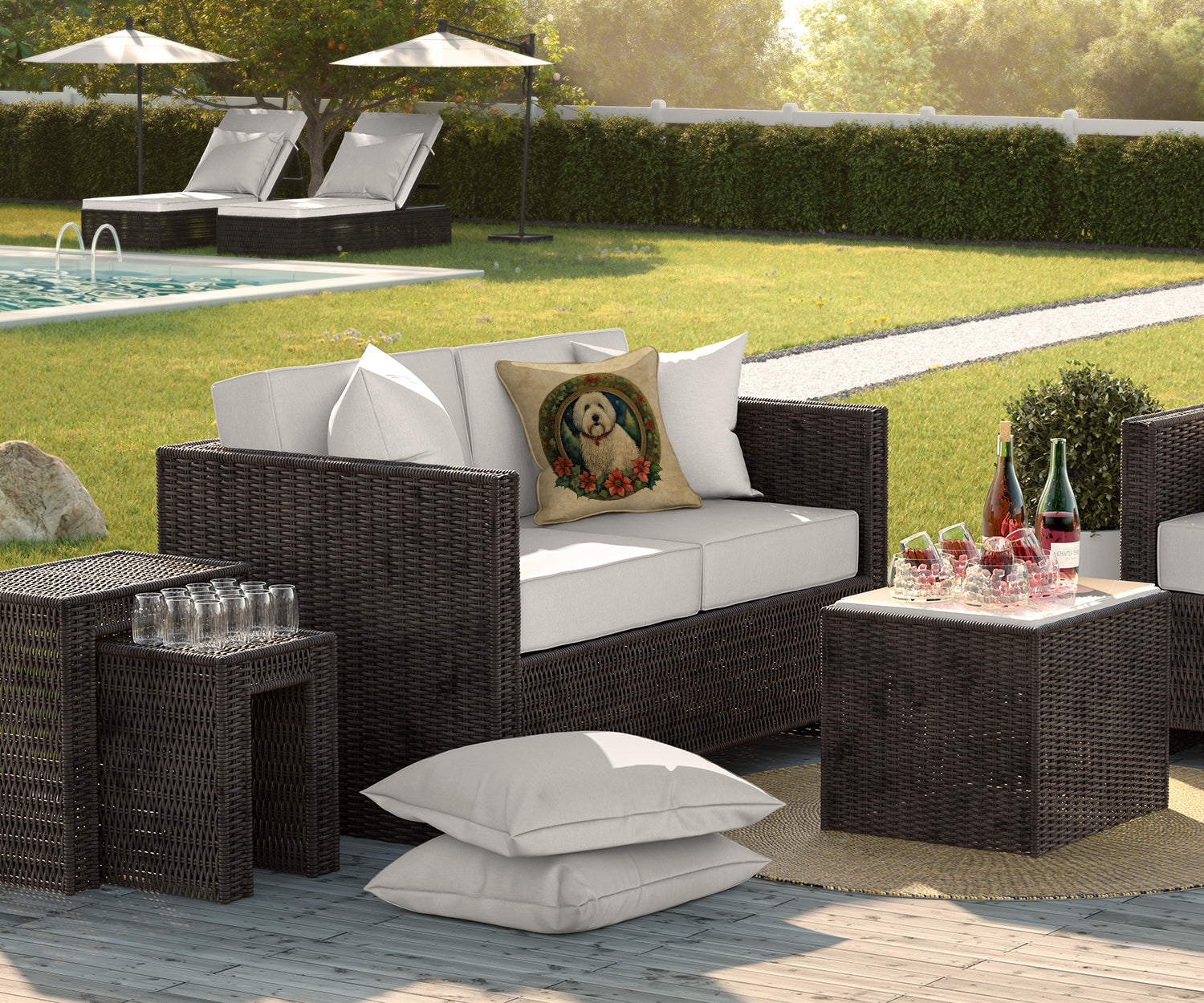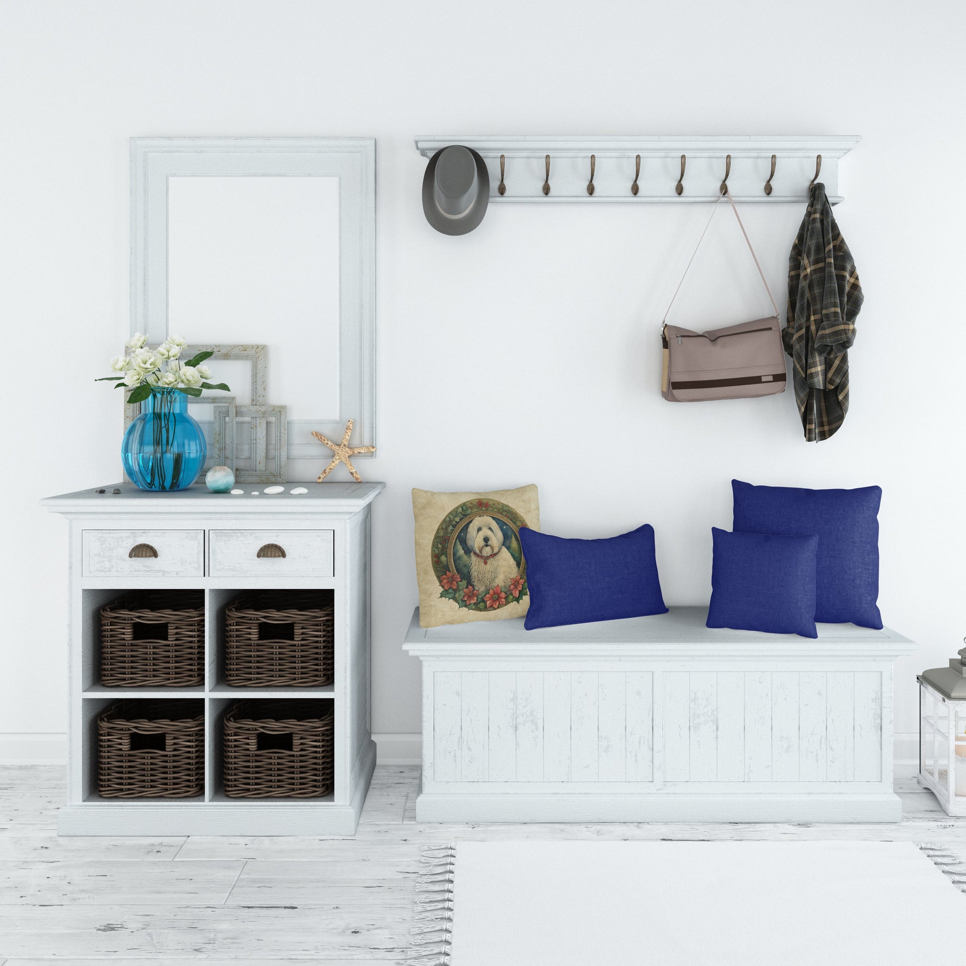 Throw Pillow featuring breed specific Old English Sheepdog artwork. Celebrate Christmas with this Christmas Pillow. Revitalize your outdoor or indoor living space with Caroline's Treasures 18x18 Fabric Decorative Pillow. With a generously sized dimension of approximately 18 inches by 18 inches, this pillow makes a comfortable and aesthetic addition to any seating area. Made from a unique, water-resistant material developed by Caroline's Treasures, the pillow sham is 100% polyester fabric that's durable and ready to weather any condition. Its vibrant, full-color artwork will not fade over time as it is dyed with color-fast dyes. Whether you place it on your patio furniture, porch, veranda, or indoor couch, its soft canvas fabric ensures a cozy experience. The pillow is handcrafted in the United States, featuring a sham created from three pieces of fabric and a polyester insert for enduring shape and overstuffed comfort. Despite being robustly built to endure the outdoors, it is as soft and snug as your favorite indoor cushions. Please note, as all our pillows are handmade, sizes may vary slightly, adding to the charm of this unique decorative item.